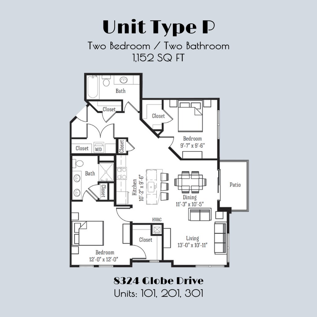 8328 B5 1 Bed/1.5 Bath (101, 103, 201, 301) - Floorplan 1 Apartment Unit: 8328 Globe Drive - 301Apartment Model: 8328 B5 1 Bed/1.5 Bath (101, 103, 201, 301)$1,7001 Bedroom, 1.5 Bath, 822 sq ftAvailable Now![]()