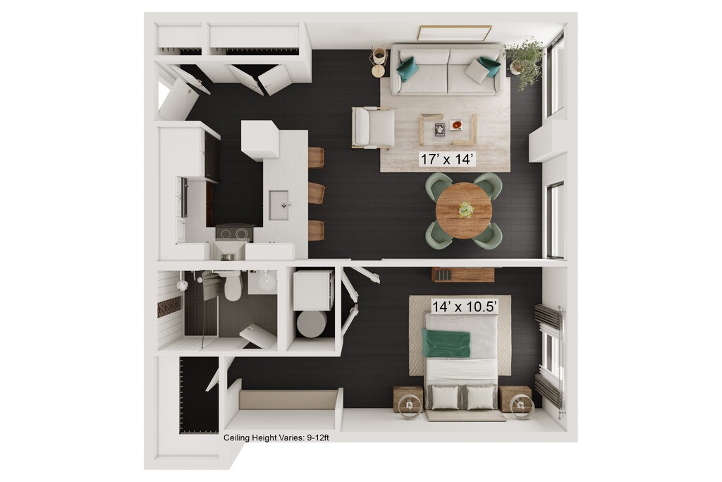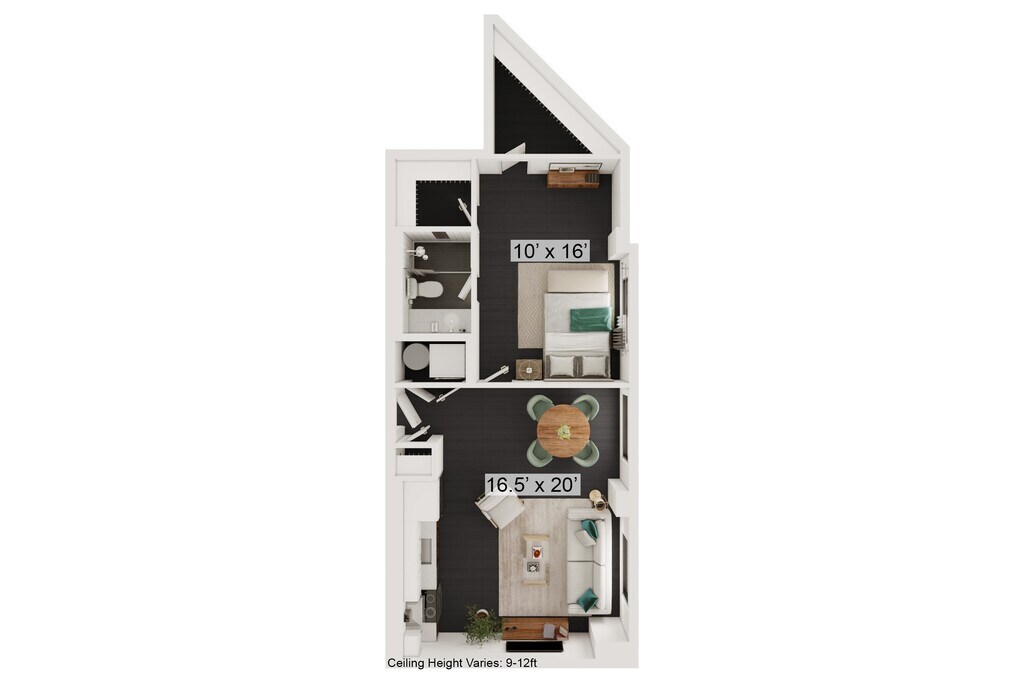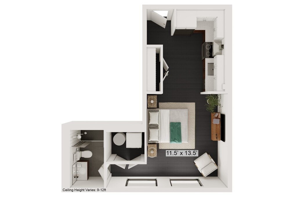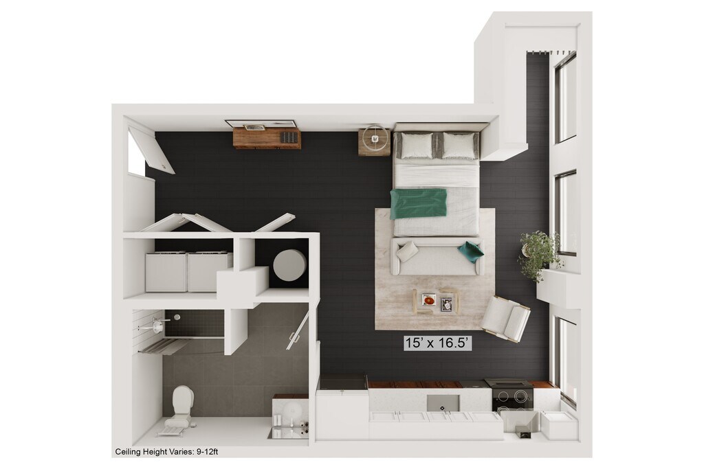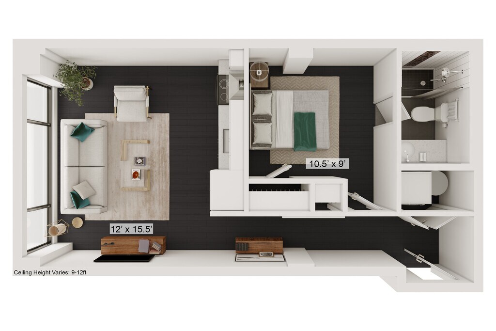 Sinclair - Studio - Floorplan 1 Van Buren - Studio