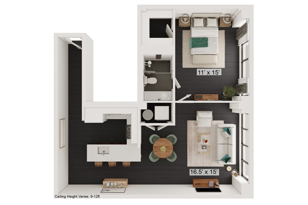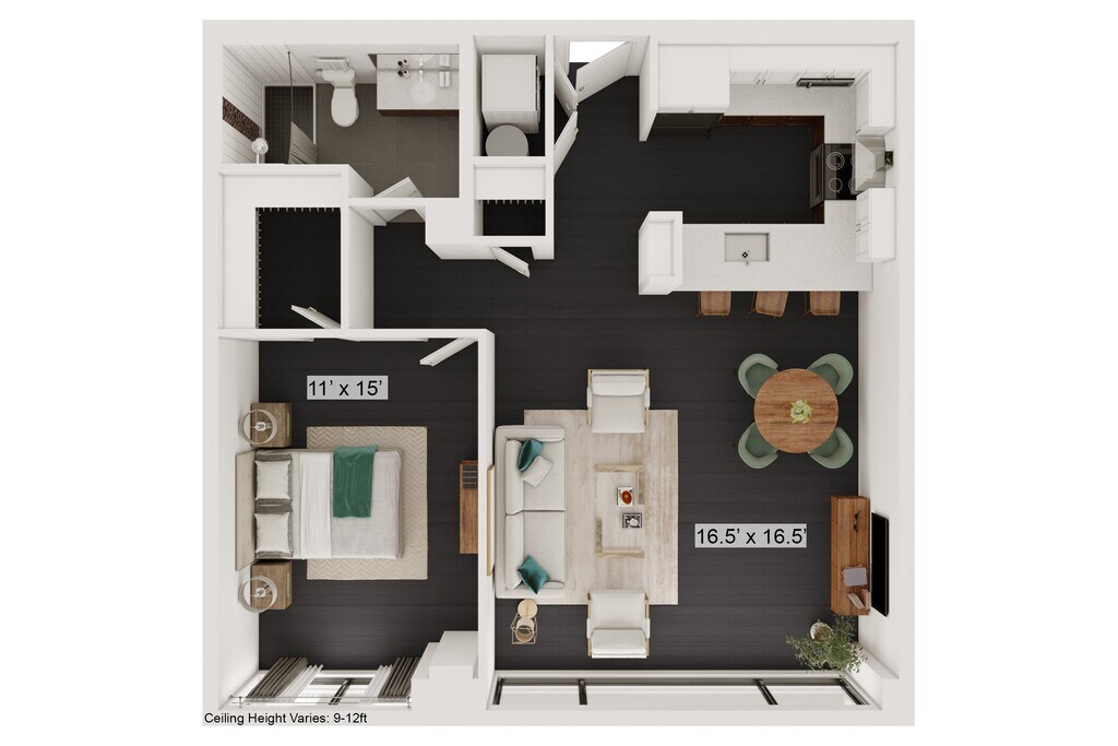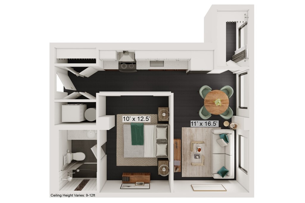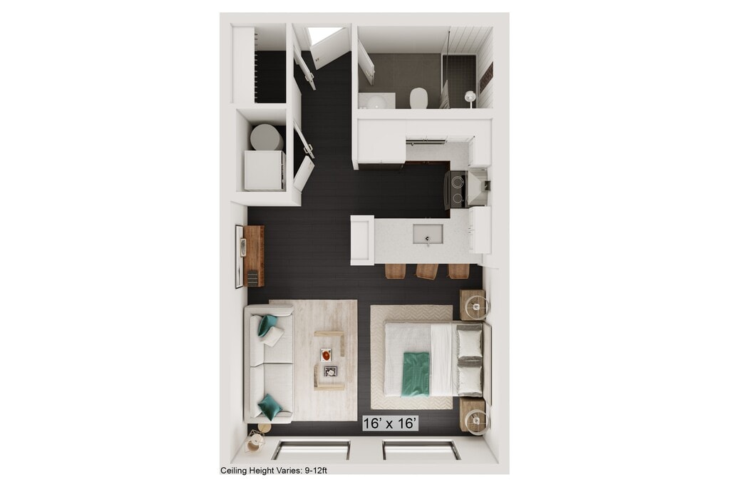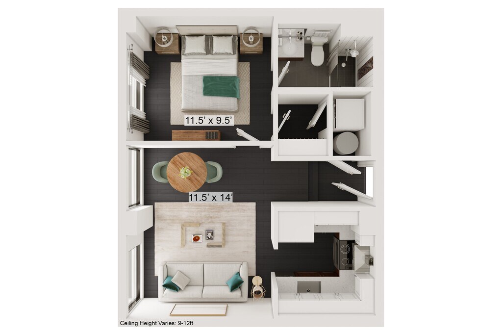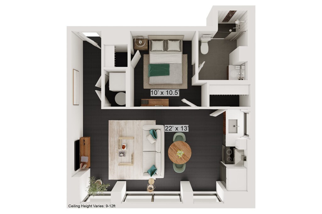 Sinclair - Studio - Floorplan 1 Van Buren - Studio
