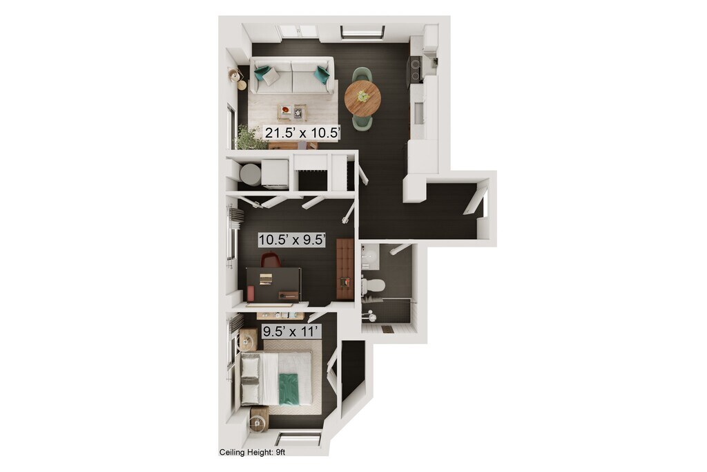 1 Bed, 1 Bath, 563 sq ftAvailable NowModel Gallery