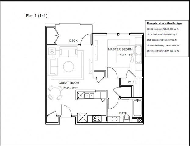 1 Bed, 1 Bath, 692-909 sq ftAvailable NowCheapest 1 BedroomThis is the cheapest 1 Bedroom at this PropertyModel Gallery