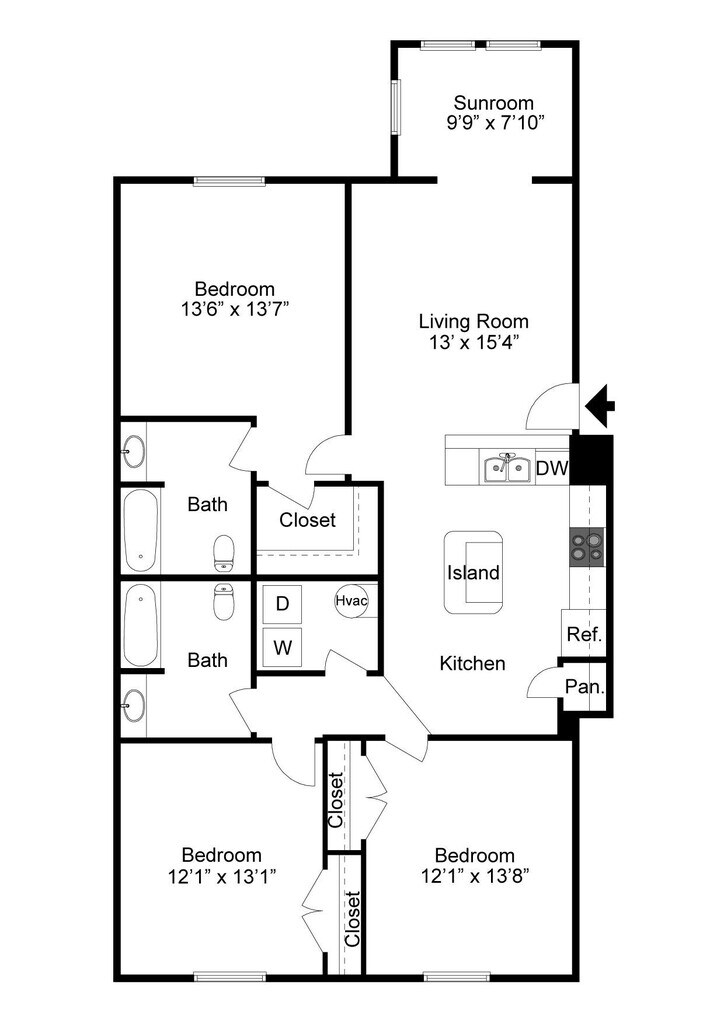 2 Bedroom (Sunroom Optional) - Floorplan 3 ![]()