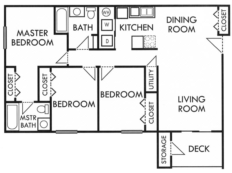 Apartment Model: CedarCall For Rates3 Bedroom, 2 Bath, 1130 sq ftUnavailable![]() - Cedar - Floorplan 1