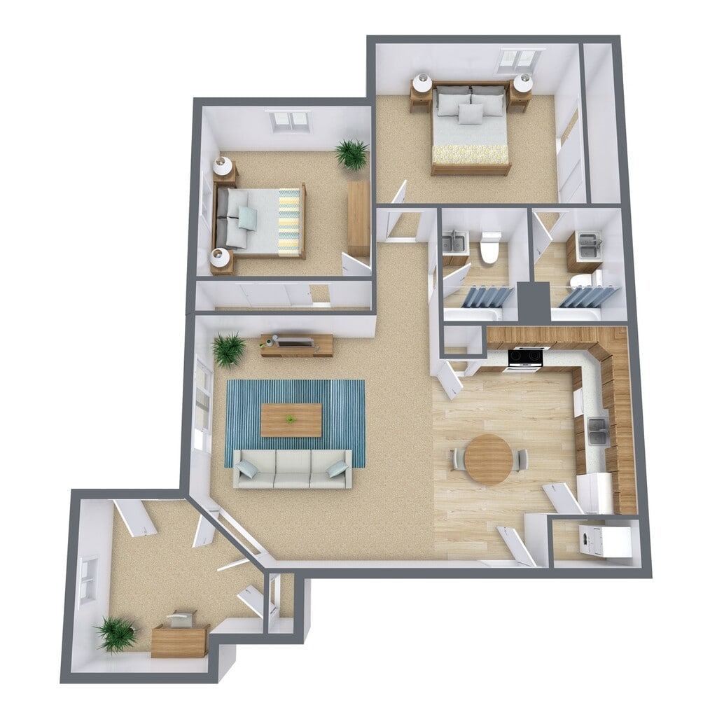 2 Beds, 2 Baths, 1350 sq ftAvailable NowLargest 2 BedroomThis is the largest 2 Bedroom at this PropertyModel Gallery