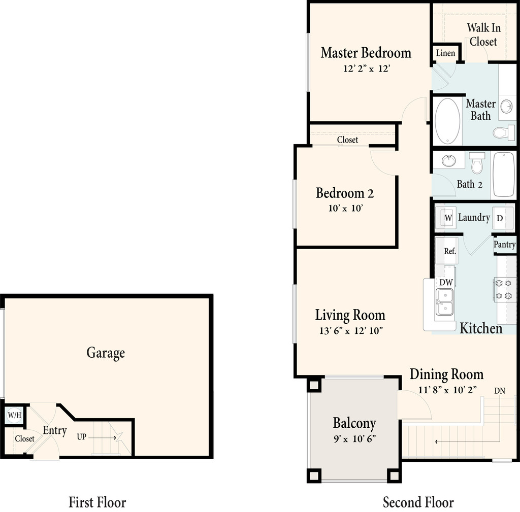 2 Beds, 2.5 Baths, 1158 sq ftLargest 2 BedroomThis is the largest 2 Bedroom at this PropertyModel Gallery