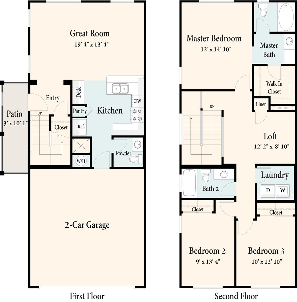 2 Beds, 2.5 Baths, 1092 sq ftModel Gallery