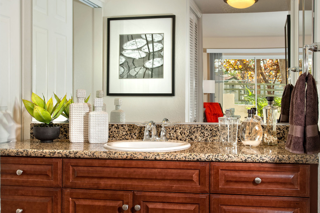 Guided Tours and Virtual Tours are available at all of our Lewis Communities. Call to schedule a time to explore our community or tour virtually on your own time. Del Mar features 1, 2, and 3-bedroom apartment homes that include features such as granite countertops, maple cabinets, all-black kitchen appliances, in-home washer and dryer, granite fireplace surround, ceiling fans, upgraded baseboards, and two-tone paint. Del Mar also offers 2 and 3-bedroom townhomes with direct access garages. Del Mar offers luxurious gated apartment homes within the master-planned community of Terra Vista. Del Mar includes three pools, four spas, a sauna, a lighted tennis court, two clubhouses, a fully equipped business center, two state-of-the-art 24-hour fitness centers, play areas, 24-hour emergency maintenance, non-smoking buildings, garages, and more. The award-winning Coyote Canyon Elementary School and the 45-acre Ralph M. Lewis Park are adjacent to the community and are surrounded by the numerous conveniences of Terra Vista, such as shopping, dining, walking trails, and parks. Del Mar is also conveniently located near Victoria Gardens.