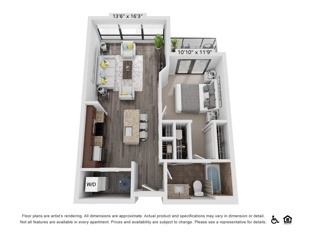 1 Bed, 1 Bath, 586 sq ftAvailable NowModel Gallery