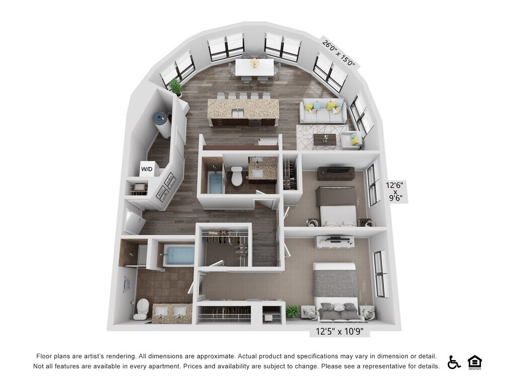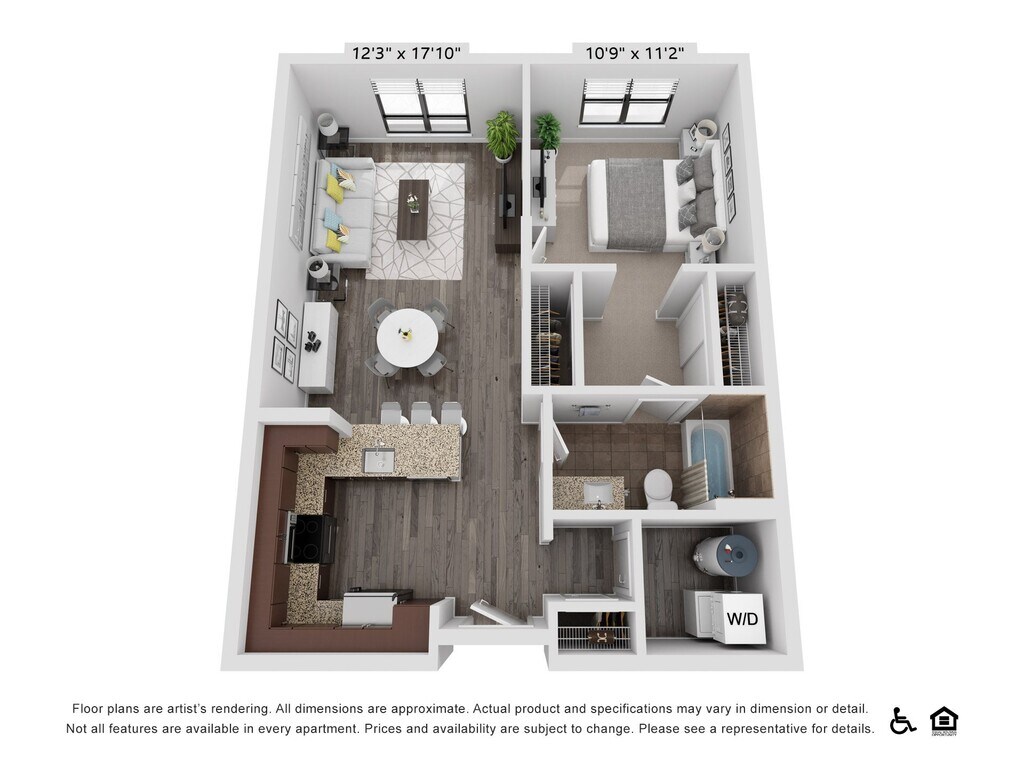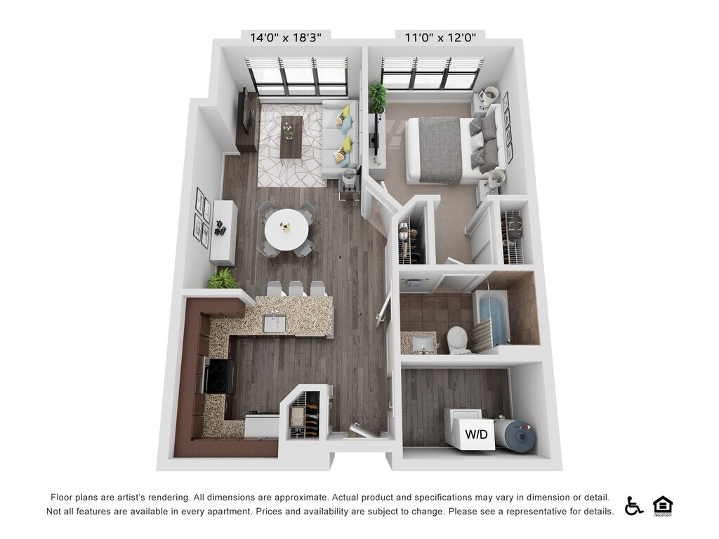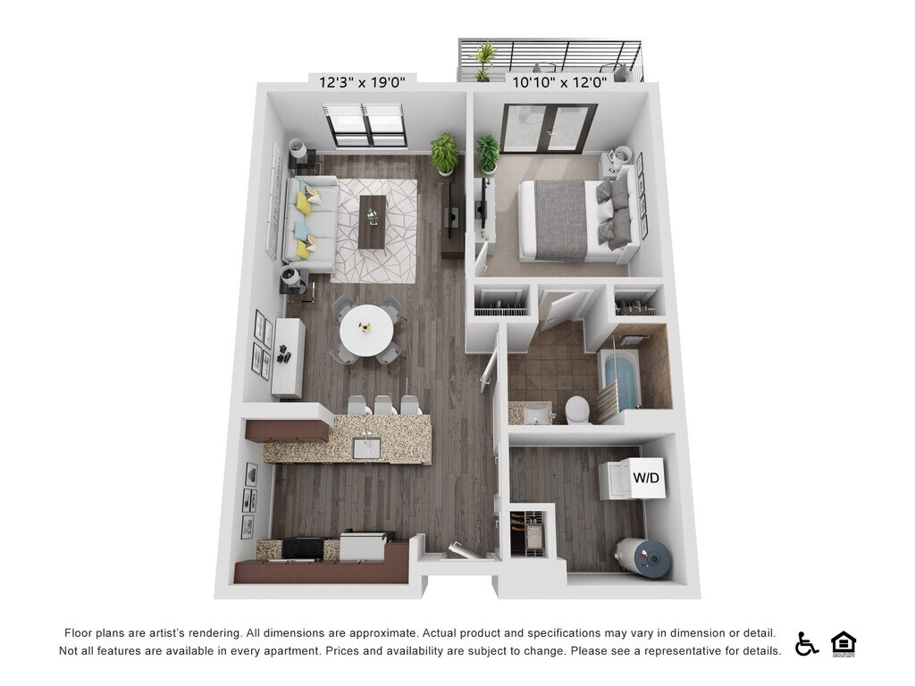 A19 - Image 1 Floor plans are artist's rendering. All dimensions are approximate. Actual product and specifications may vary in dimension or detail. Not all features are available in every rental home. Prices and availability are subject to change. Base rent is based on monthly frequency. Additional fees may apply, such as but not limited to package delivery, trash, water, amenities, etc. Deposits vary. Please see a representative for details.
