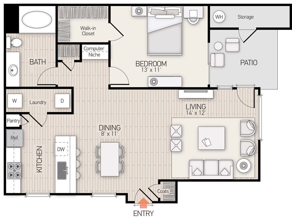 1 Bed, 1 Bath, 1002 sq ftAvailable Nov 23Largest 1 BedroomThis is the largest 1 Bedroom at this PropertyModel Gallery