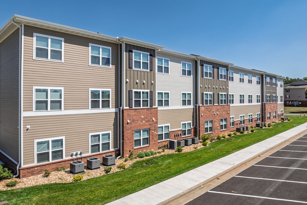 Delmar Meadows is a 55+ development in Springfield, Missouri. Newly constructed 50-unit-3 story elevator-serviced building. All fifty units are two bedroom, one bath units. The two-bedroom units measure 825 square feet. Unit amenities include carpeting/vinyl plank flooring, coat closets, walk-in closets, ceiling fans, and central HVAC. Appliances include a refrigerator, over/range, dishwasher, garbage disposal, microwave, and in-unit washer/ dryer. At the Leasing Office, the amenities included are elevator, computer lab, exercise facility, and a picnic area. To learn more about our apartment community and all that it has to offer, call today. *Rents are subject to change*