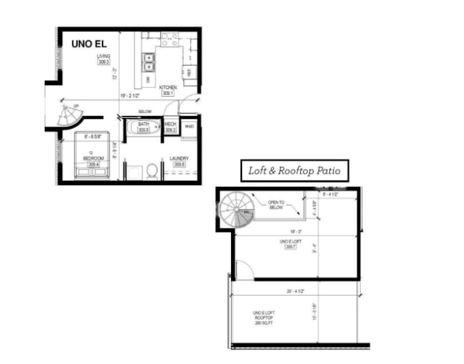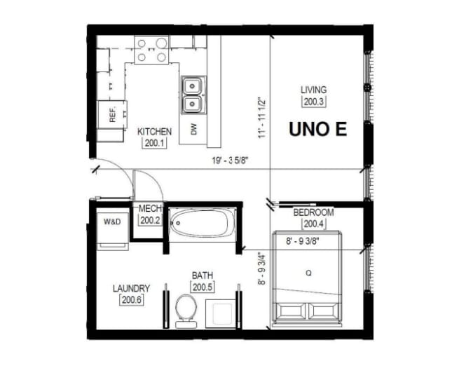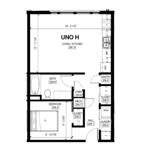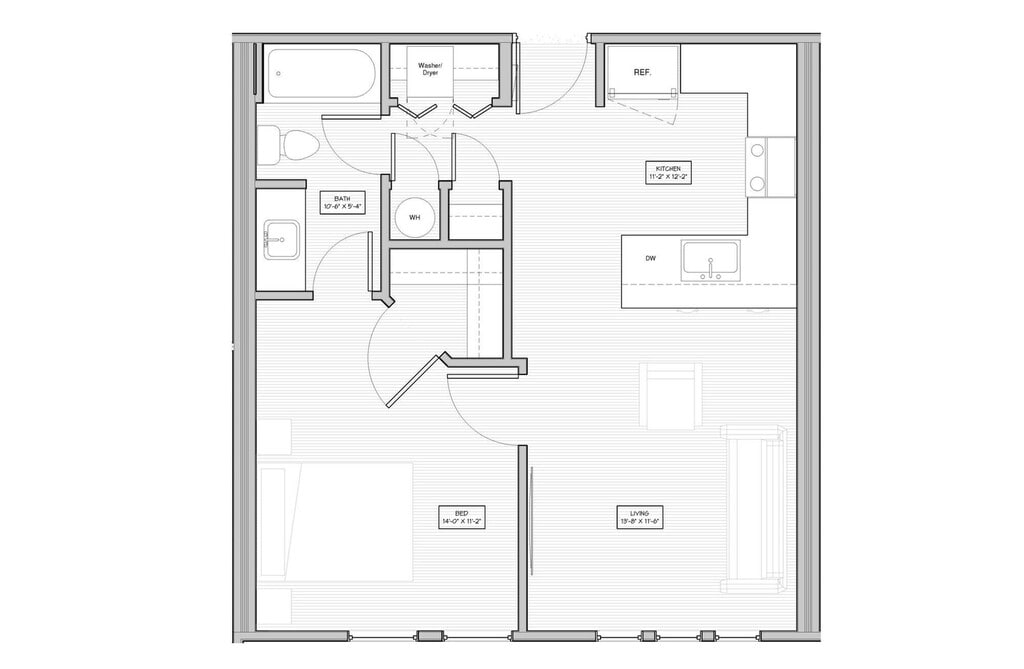 Depot - 1 Bedroom Uno E - Floorplan 1 Depot - 1 Bedroom Uno H