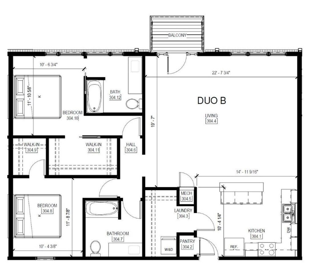 Dunn & Davis - 1 Bedroom Harriet - Floorplan 1 Apartment Unit: 301-200Apartment Model: Dunn & Davis - 1 Bedroom Harriet1 Bedroom, 1 Bath, 646 sq ftAvailable March 18, 2026Depot - 1 Bedroom Uno E