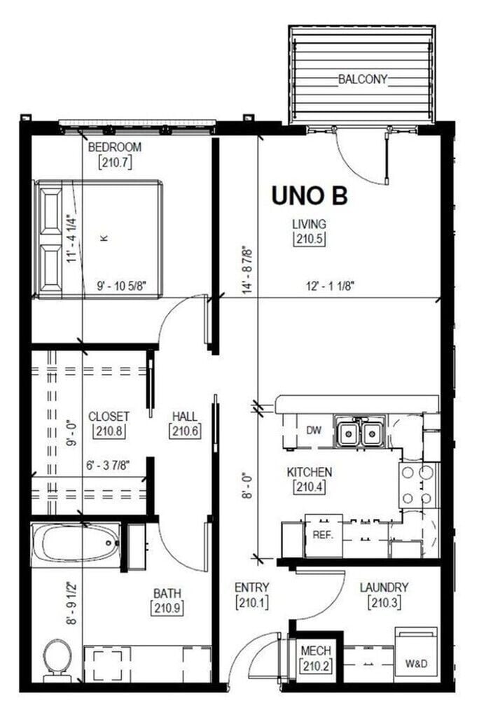 Depot - 1 Bedroom Uno B - Floorplan 1 Carriage House - 1 Bedroom