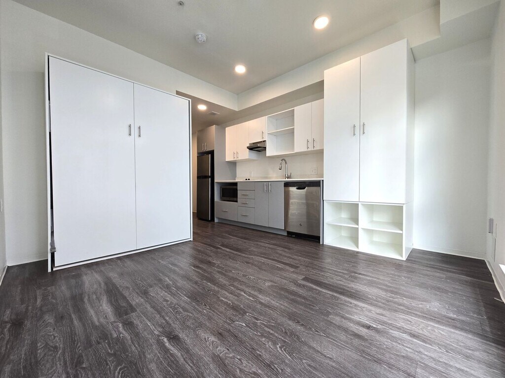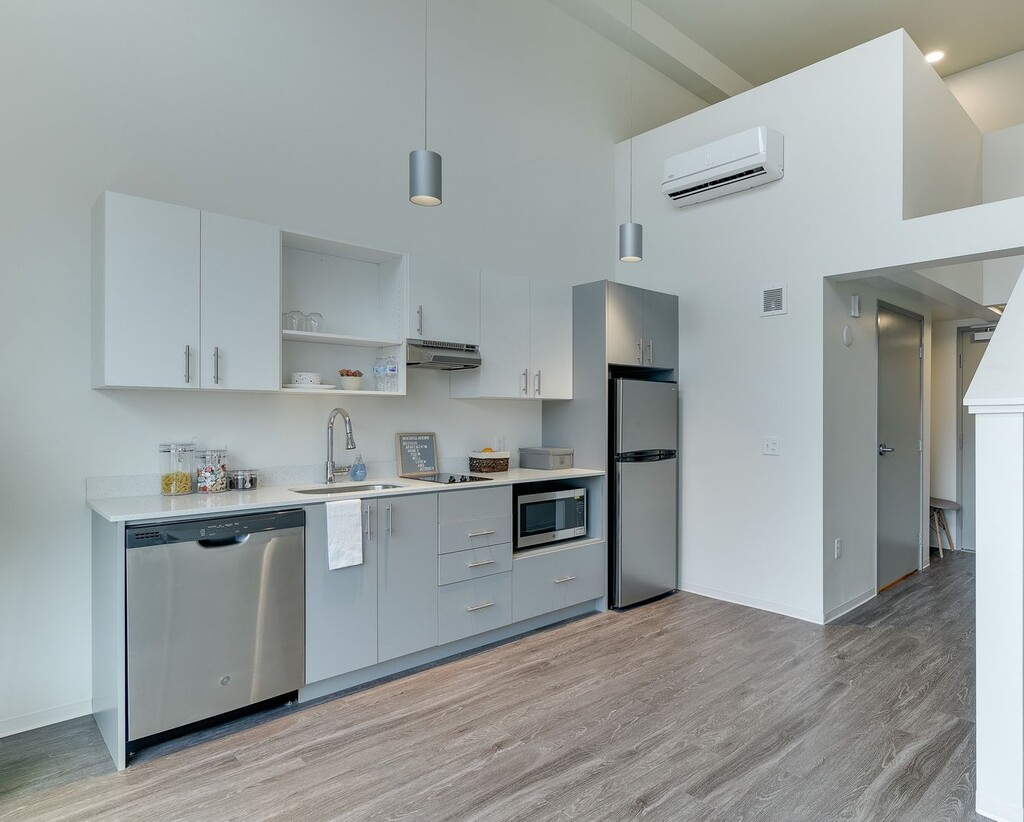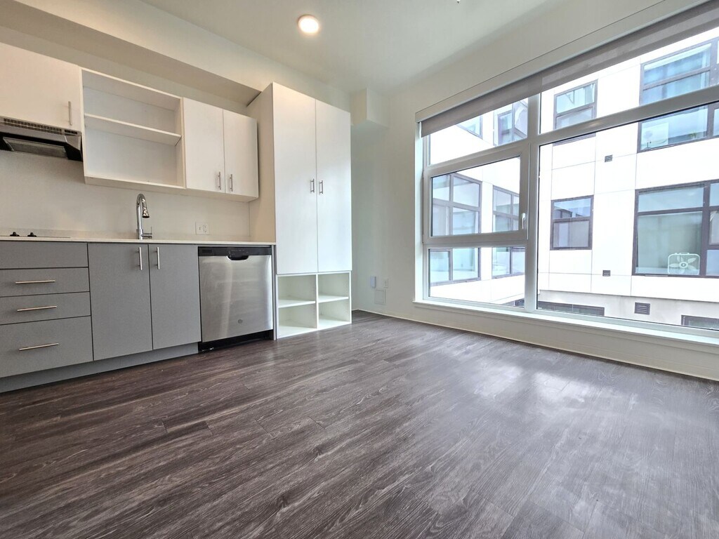 Welcome to Unit 420 at Derby Slabtown, a thoughtfully designed studio apartment on the 4th floor offering comfort, functionality, and a peaceful view of the courtyard. This smartly laid-out space features a built-in Murphy bed that easily tucks away to create open living space during the day and a cozy sleeping area at night. A large window facing the courtyard fills the apartment with natural light while maintaining privacy and quiet. Enjoy the convenience of a full-size dishwasher, walk-in shower, and contemporary finishes throughout. The open-concept layout and efficient design make this studio ideal for anyone seeking modern city living in a compact, well-appointed space. Located in the heart of NW Portland’s Slabtown neighborhood, Derby offers easy access to local cafes, restaurants, New Seasons, Forest Park trails, and the streetcar. Schedule a tour today and see why Unit 420 is the perfect mix of style and practicality.