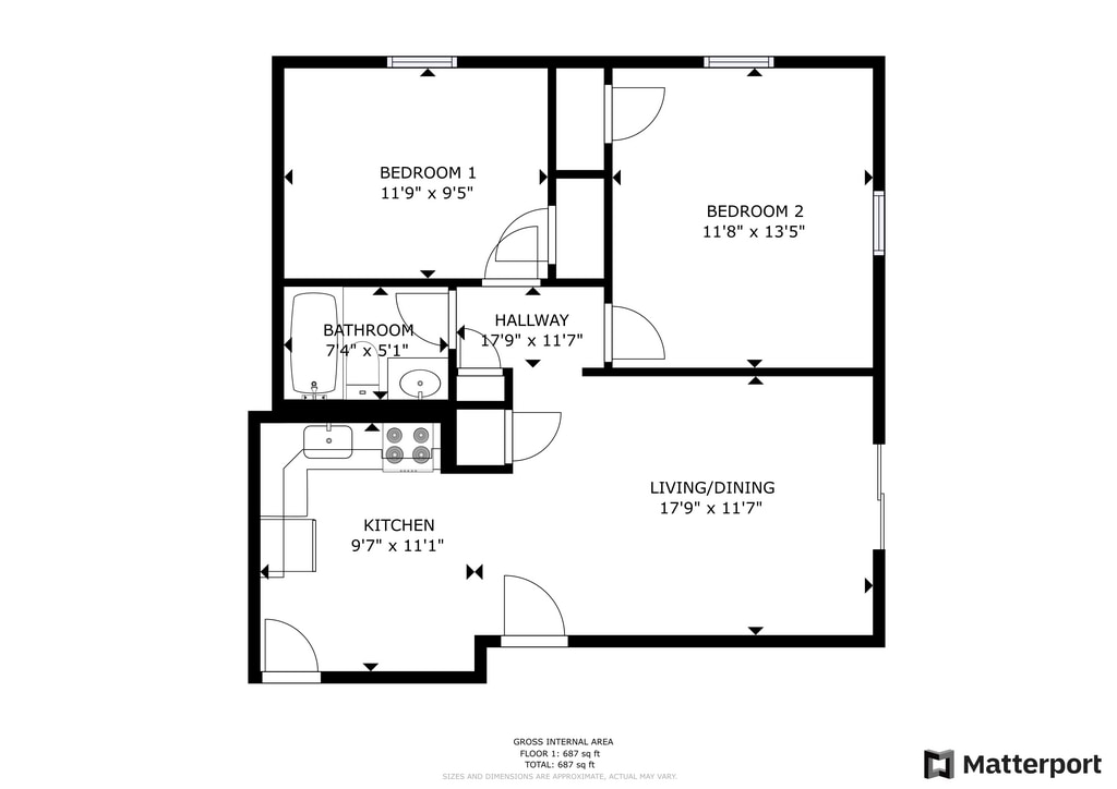 2 Beds, 1 Bath, 687-734 sq ftAvailable NowModel Gallery