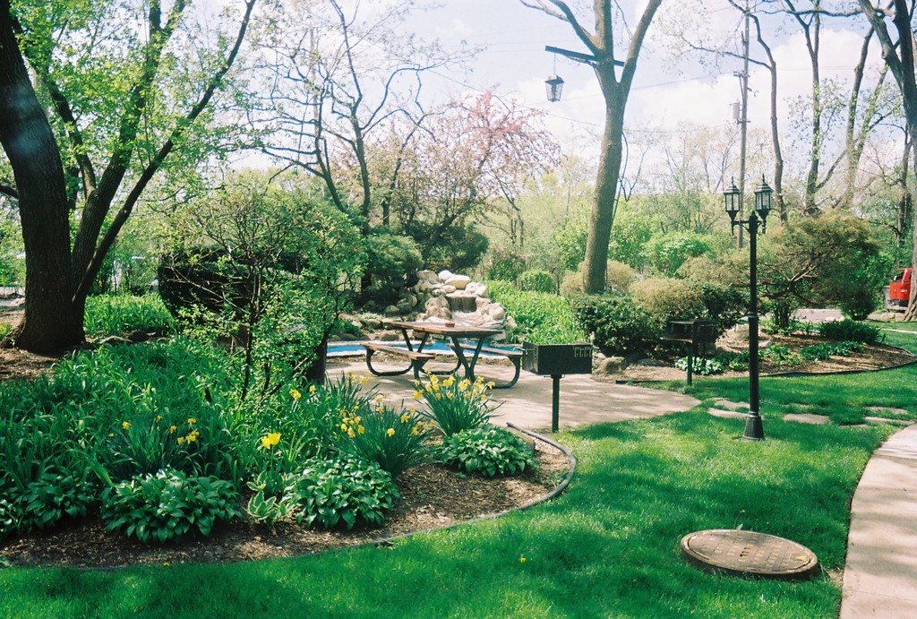 Located in a beautiful park-like setting on a quiet street in a residential neighborhood, Des Plaines Apartments features walking paths and seating areas with mature trees, barbecue areas and waterfall in central courtyard. Heat, hot water and cooking gas are included in rent as well as a parking space and a good sized storage unit . Bedrooms have great closet space and a ceiling fan. Kitchens have ample cabinet space. Second floor units have a skylight in the kitchen. Dining areas are off the kitchens have ceiling fans. Cable ready. Air conditioned. Laundry facilities on premises. Convenient to O'Hare Airport and shopping. Close to transportation, Cumberland Metra stop and bus lines. Great location at Golf and Wolf.