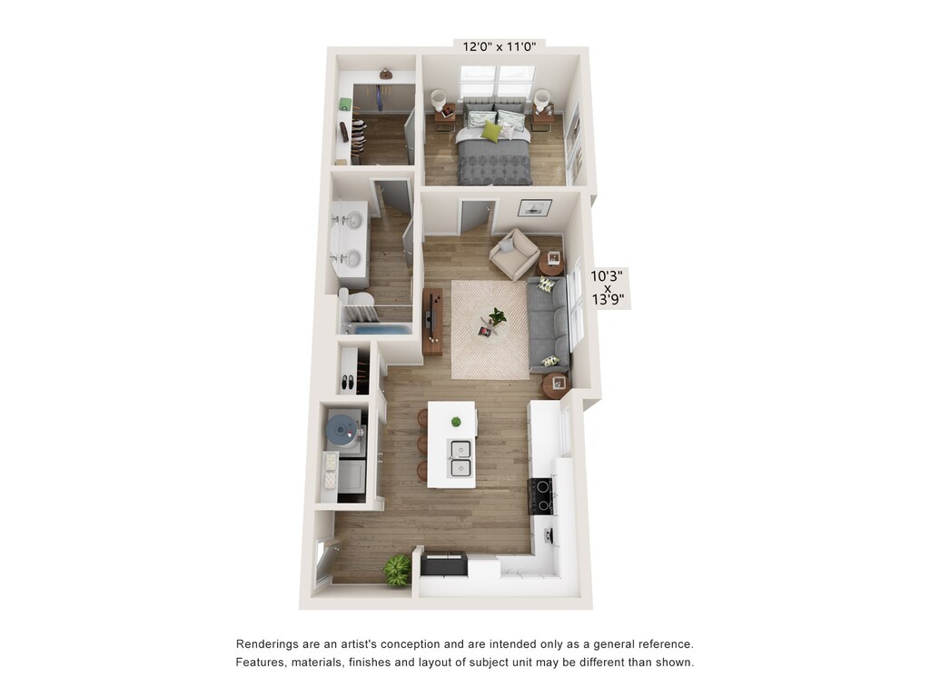 Apartment Model: A1 - SageFrom $1,3991 Bedroom, 1 Bath, 584 sq ftAvailable November 21, 2025![]()