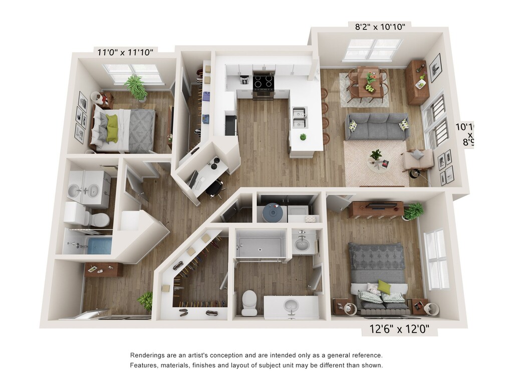 2 Beds, 2 Baths, 1109 sq ftModel Gallery