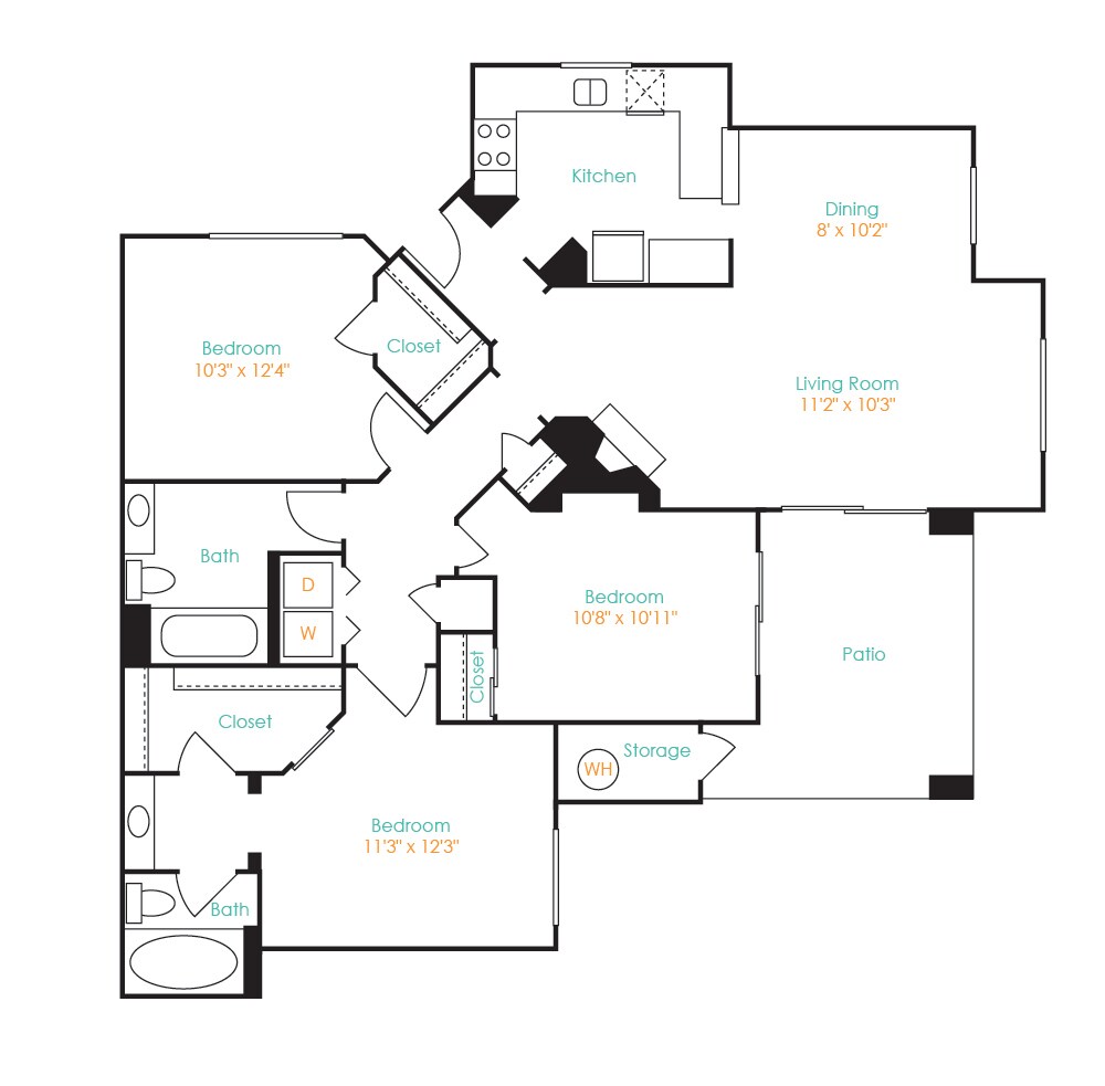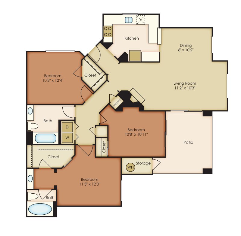 Apartment Model: 1 Bed 1 BathFrom $1,4001 Bedroom, 1 Bath, 708 sq ftAvailable Now![]()