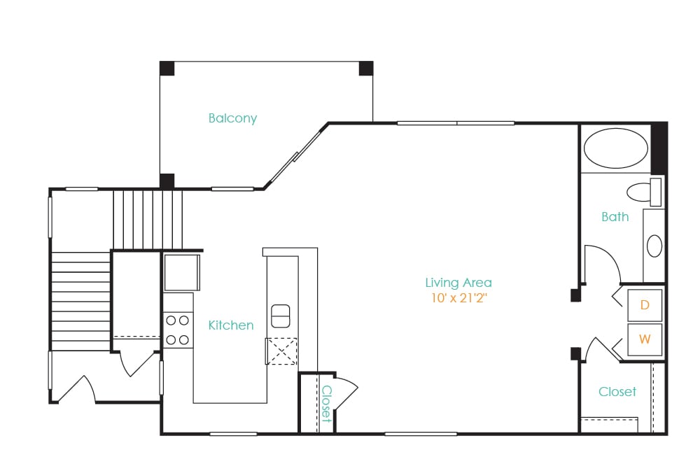 1 Bed 1 Bath - Floorplan 1 ![]()