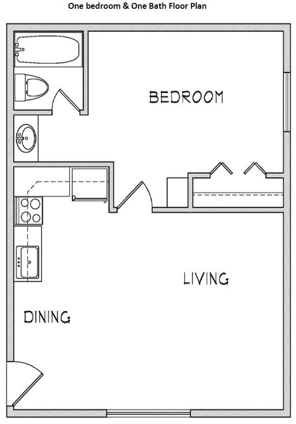 1x1 - Floorplan 11 Apartment Unit: 125Apartment Model: 1x1$9851 Bedroom, 1 Bath, 552 sq ftAvailable Now2 Bedrooms