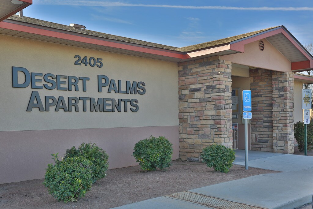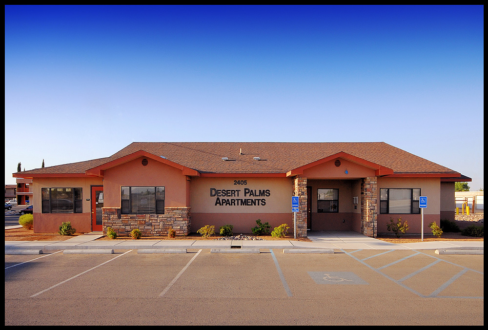 Welcome to Desert Palms offering Appliances, Furnished, Close to School, Close to Shopping, Community Room, Gas Included, Laundry Facility, Mini-Blinds, Playground, Refrigerated Air, Sewer Included, Trash Included, and Water Included. Desert Palms was developed and operates with Federal housing financing. The property utilizes 2 Federal housing programs to make rent affordable to lower income tenants. These programs are Low Income Housing Tax Credit and HOME.