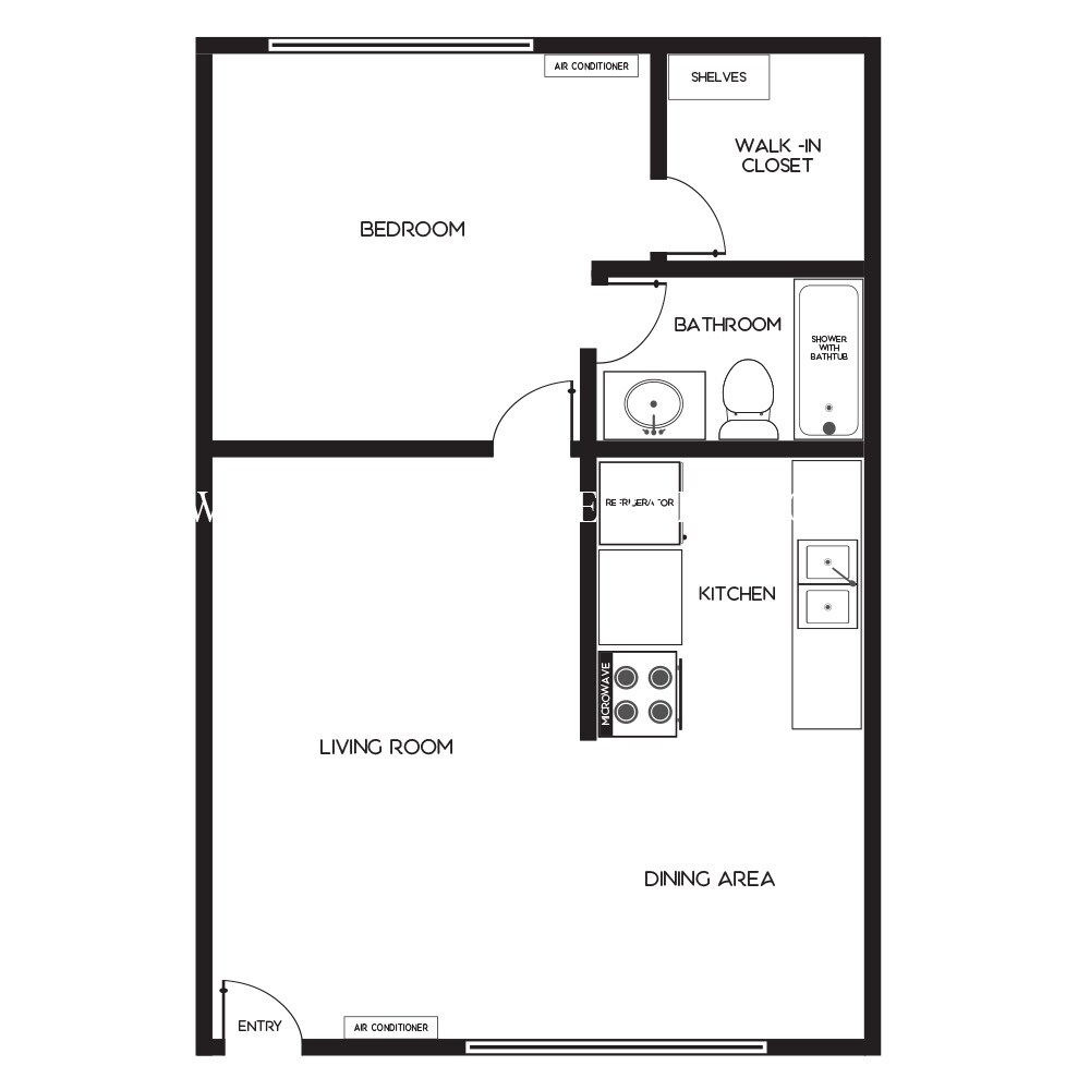 1 Bedroom 1 Bath - Floorplan 1 2 Bedrooms