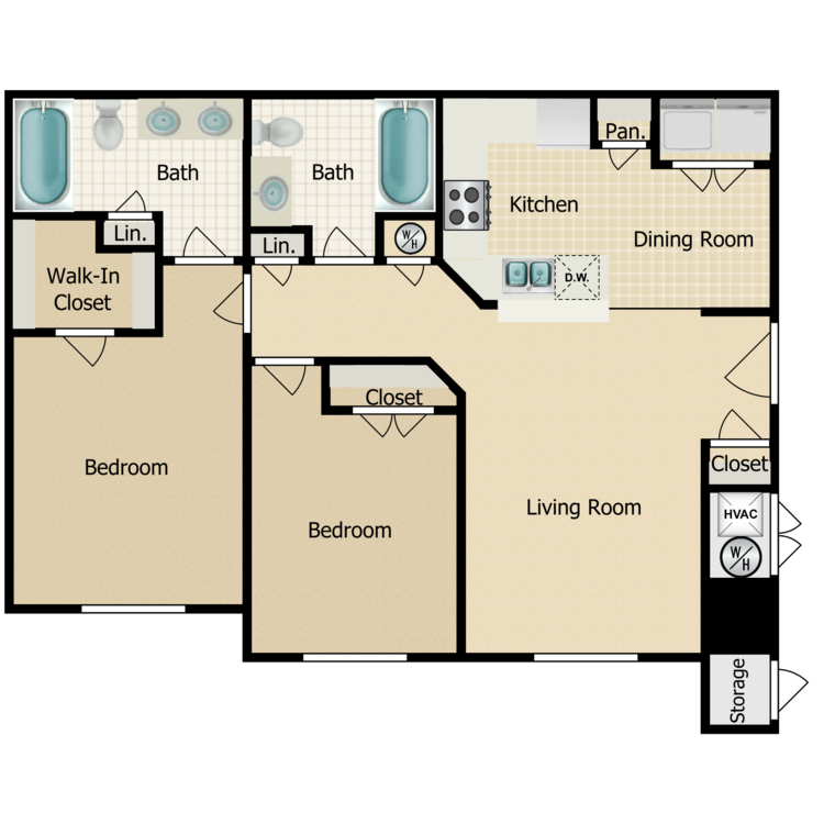 Apartment Model: Two BedroomFrom $7912 Bedroom, 2 Bath, 963 sq ftAvailable Now![]()