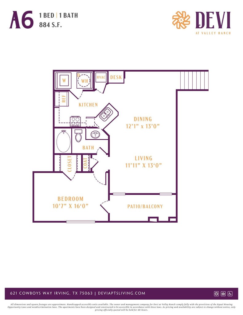 Apartment Model: A6From $1,5521 Bedroom, 1 Bath, 884 sq ftAvailable Now![]()