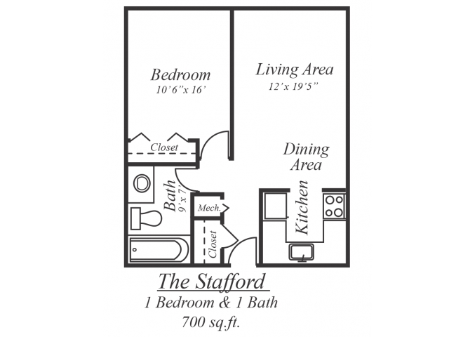 The Stafford - Floorplan 1 Apartment Unit: 0108Apartment Model: The Stafford$1,0801 Bedroom, 1 Bath, 700 sq ftAvailable NowApartment Unit: 0324Apartment Model: The Stafford$1,0801 Bedroom, 1 Bath, 700 sq ftAvailable NowApartment Unit: 0306Apartment Model: The Stafford$1,0801 Bedroom, 1 Bath, 700 sq ftAvailable Now2 Bedrooms