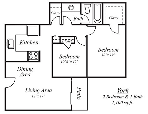 Apartment Model: The YorkCall For Rates2 Bedroom, 1 Bath, 1100 sq ftUnavailableFloorplansPhotos![]()