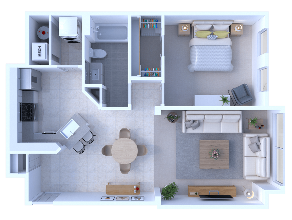 1 Bed, 1 Bath, 847 sq ftModel Gallery