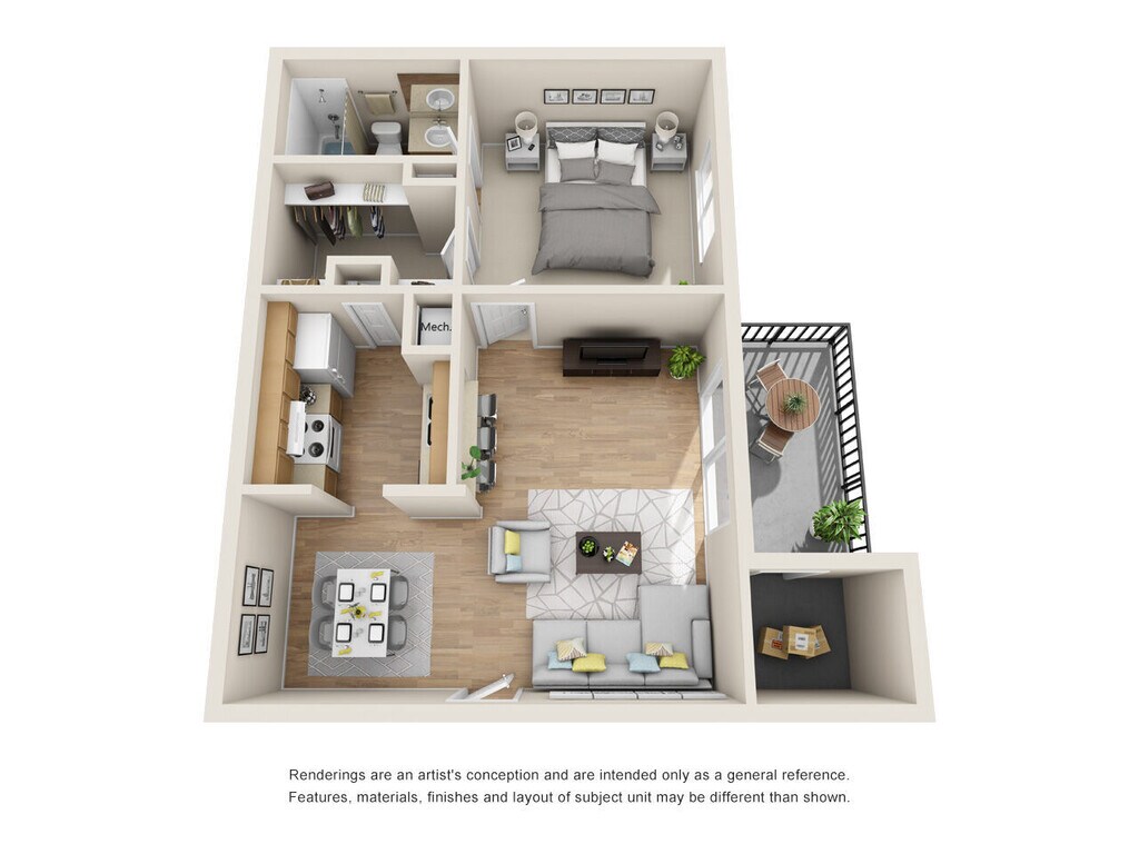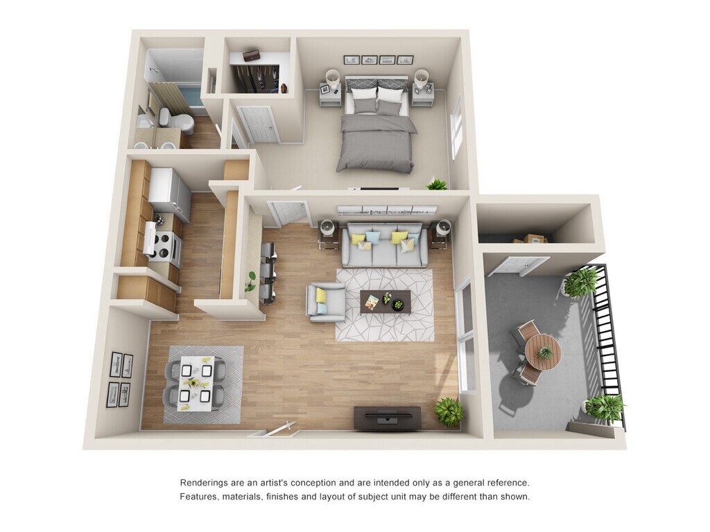 1 Bed, 1 Bath, 642 sq ftModel Gallery