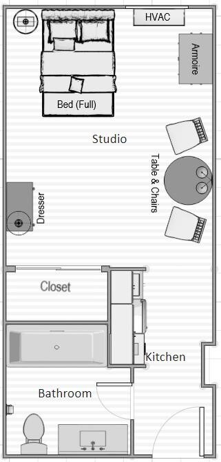 Studio, 1 Bath, 216 sq ftAvailability Details