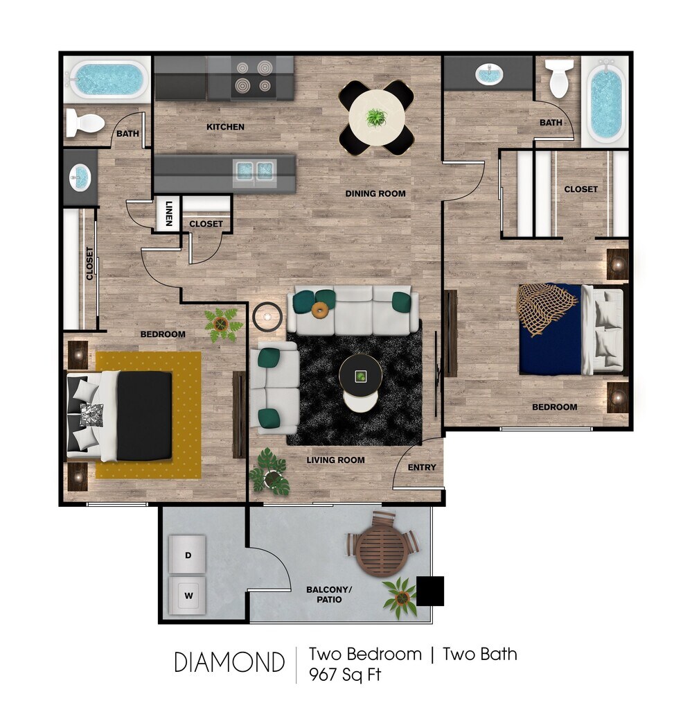 2 Beds, 2 Baths, 868 sq ftAvailable NowCheapest 2 BedroomThis is the cheapest 2 Bedroom at this PropertyModel Gallery