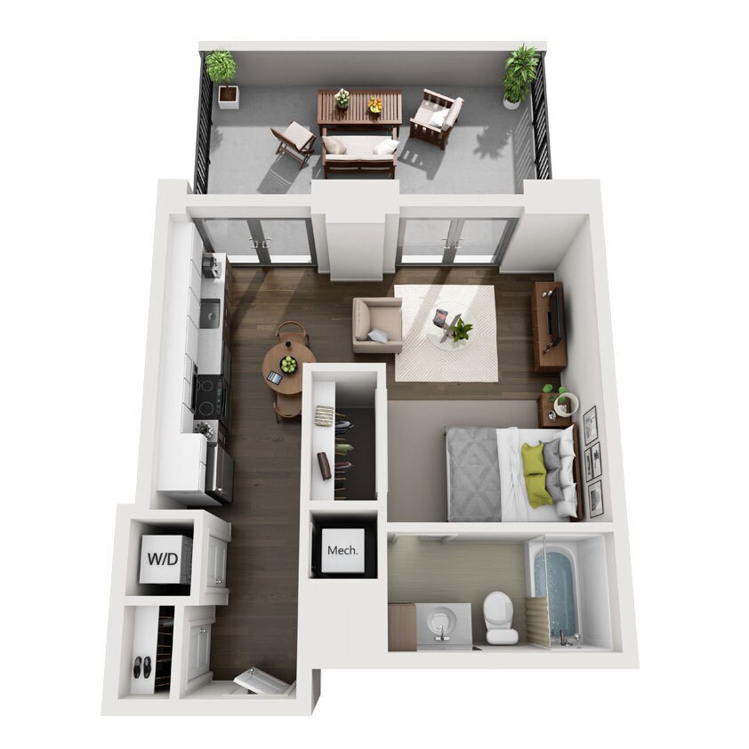 1 Bed, 1 Bath, 744 sq ftModel Gallery