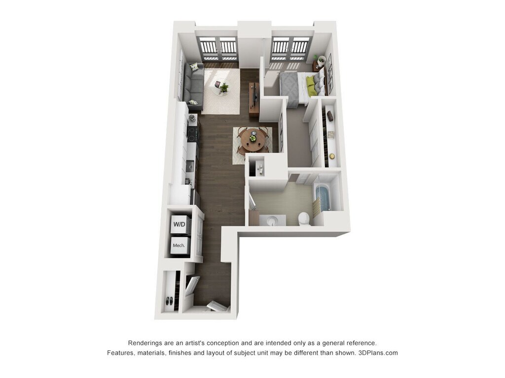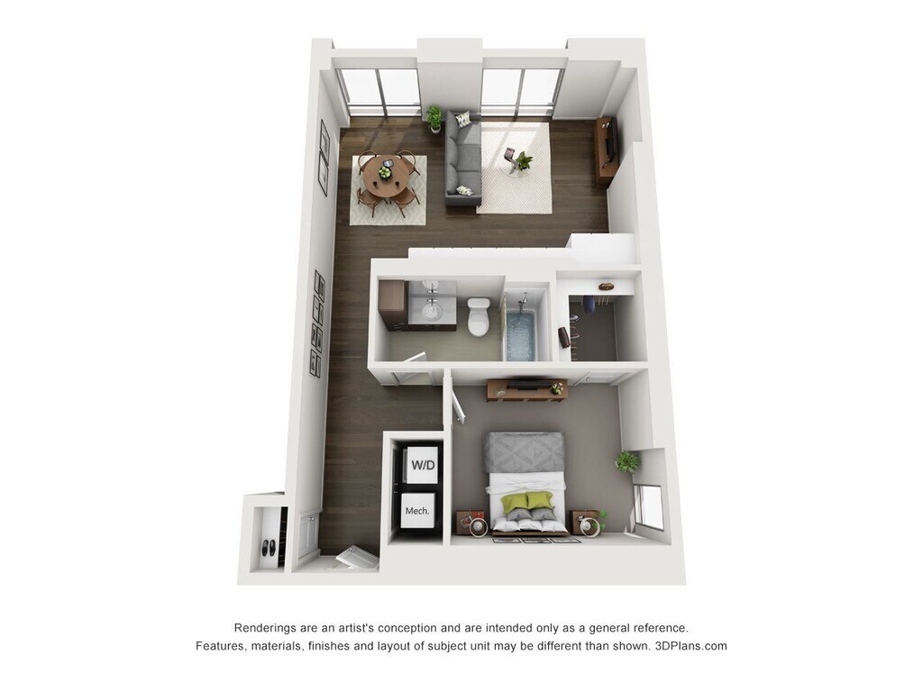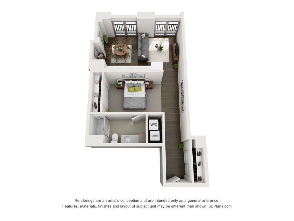 1x1 D - Floorplan 1 Floor plans are artist's rendering. All dimensions are approximate. Actual product and specifications may vary in dimension or detail. Not all features are available in every rental home. Prices and availability are subject to change. Base rent is based on monthly frequency. Additional fees may apply, such as but not limited to package delivery, trash, water, amenities, etc. Deposits vary. Please see a representative for details.