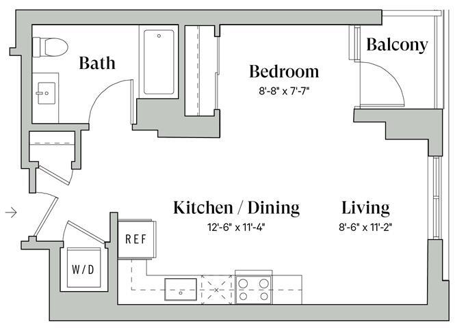 Studio, 1 Bath, 580 sq ftAvailable NowModel Gallery