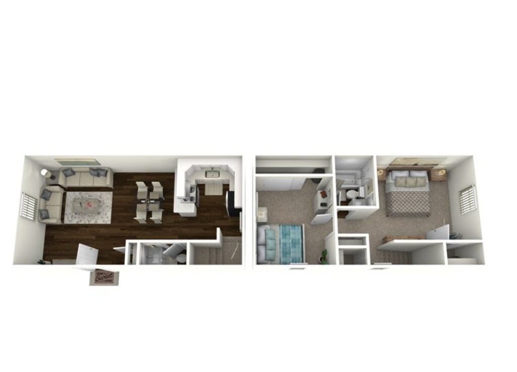 2 Beds, 1 Bath, 900 sq ftModel Gallery