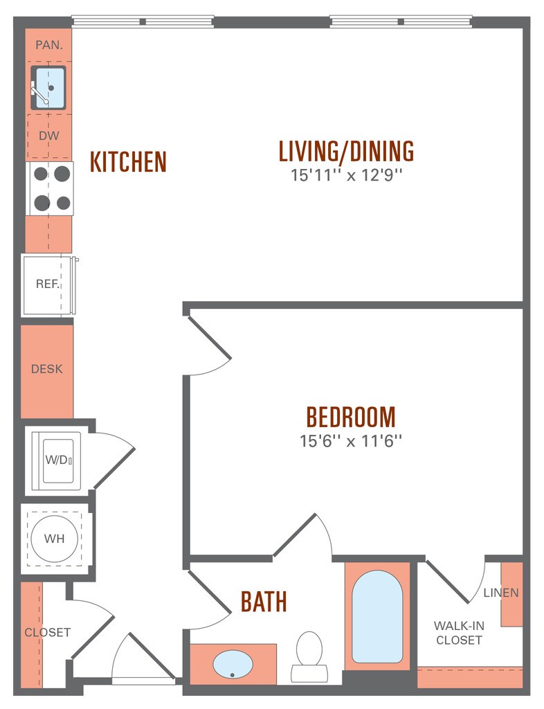 1 Bed, 1 Bath, 673 sq ftAvailable NowModel Gallery