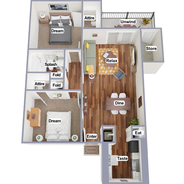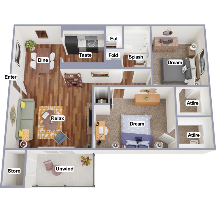 2 Beds, 2 Baths, 964 sq ftAvailable NowModel Gallery