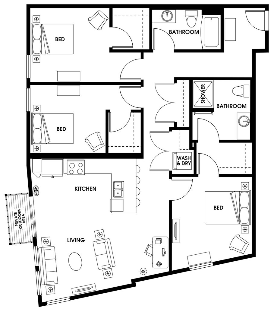 Apartment Model: One Bedroom A13From $2,2501 Bedroom, 1 Bath, 793 sq ftAvailable Now![]()