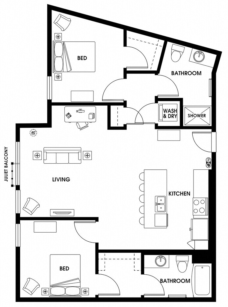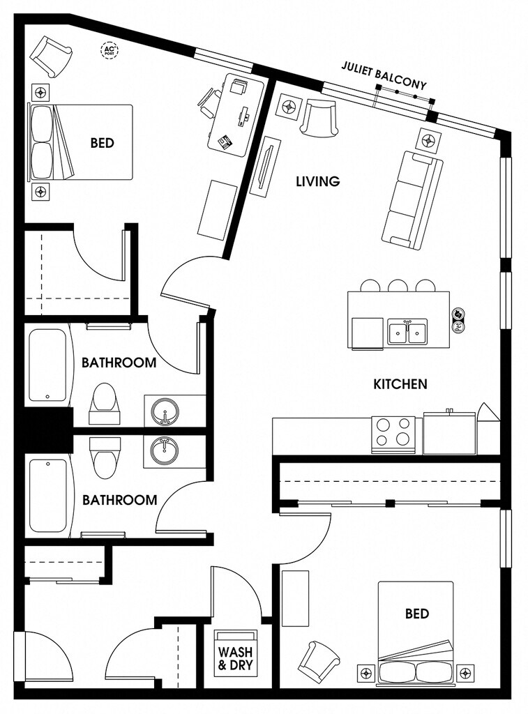 One Bedroom A14 - Floorplan 1 Apartment Unit: A206Apartment Model: One Bedroom A14$2,1501 Bedroom, 1 Bath, 807 sq ftAvailable NowUrban One Bedroom U6