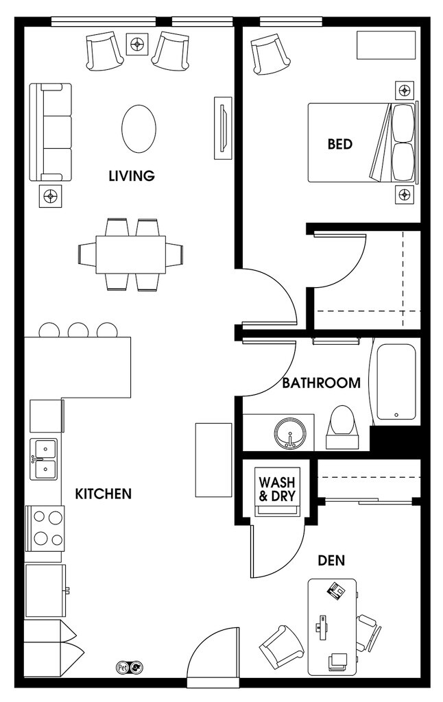 One Bedroom Den AD1 - Floorplan 1 Apartment Unit: B409Apartment Model: One Bedroom Den AD1$2,2961 Bedroom, 1 Bath, 735 sq ftAvailable NowOne Bedroom A8