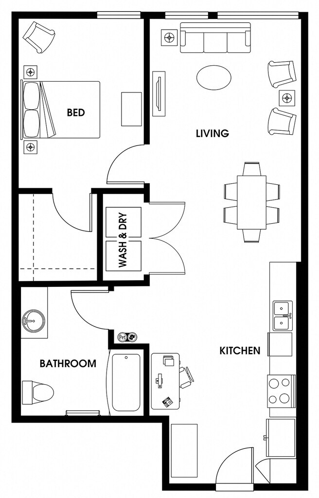 1 Bed, 1 Bath, 709 sq ftAvailable NowModel Gallery