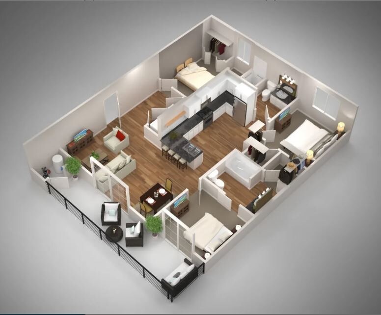 2B - Floorplan 3 3 Bedrooms