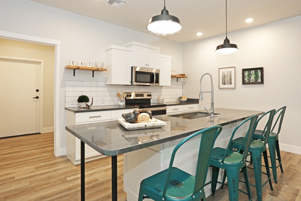District Lofts is located at the heart of the thriving restaurant hub, the Heritage District, in the booming Town of Gilbert. With its farmhouse rustic charm, surround yourself by thoughtfully designed spaces that are unique and authentic -- like you. District Lofts offers contemporary floor plans offer expansive living areas and vintage appointments such as: industrial sliding doors, cabinets with exposed shelving, distinctive lighting and plumbing fixtures, as well as distressed plank flooring, nine-foot ceilings, stainless appliances and full-size washers and dryers.