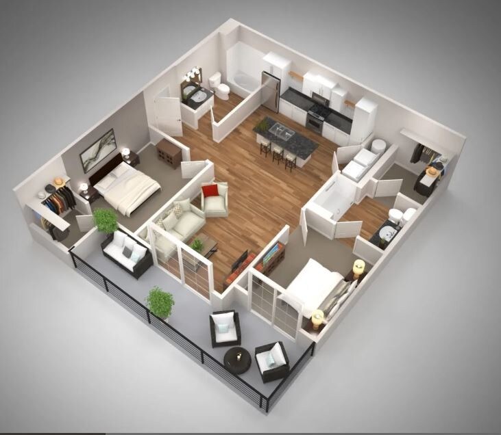 2 Beds, 2 Baths, 1297 sq ftLargest 2 BedroomThis is the largest 2 Bedroom at this PropertyModel Gallery
