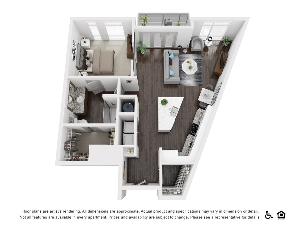 Apartment Model: A1- District LoftsFrom $1,5951 Bedroom, 1 Bath, 835 sq ftAvailable NowFloor plans are artist's rendering. All dimensions are approximate. Actual product and specifications may vary in dimension or detail. Not all features are available in every rental home. Prices and availability are subject to change. Base rent is based on monthly frequency. Additional fees may apply, such as but not limited to package delivery, trash, water, amenities, etc. Deposits vary. Please see a representative for details.